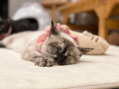 2023.03.25 ちまき #スタッフ #里親募集中 里親募集中 膝乗りが得意な甘えん坊♪猫はちょっぴり苦手です。まったり過ごすのが好きです。 プロフィール 名前 ちまき 性別 メス 年齢 推定10才~ 毛色 シャムミックス 血液検査 猫エイズ(-) 猫白血病(-) 避妊手術 チャームポイント ブルーの目に先っぽだけ白いしっぽ! 最終ワクチン日 2023/5/31