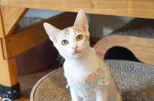 保護された猫たちは人馴れ、病気(身体的、精神的)を治療した上でカフェデビューしています。